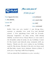 Devant chez nous, il y a une rivière et beaucoup de gens viennent nager. Le jour de mon anniversaire, je suis allée à la plage et j’ai partagé quelques moments avec ma famille. Merci pour vos vœux à l’occasion de mon anniversaire et pour les jolis dessins, merci à l’équipe BB rêve et à tous les enfants. Je vous envoie un gros câlin, avec mon amour Rugeidy.